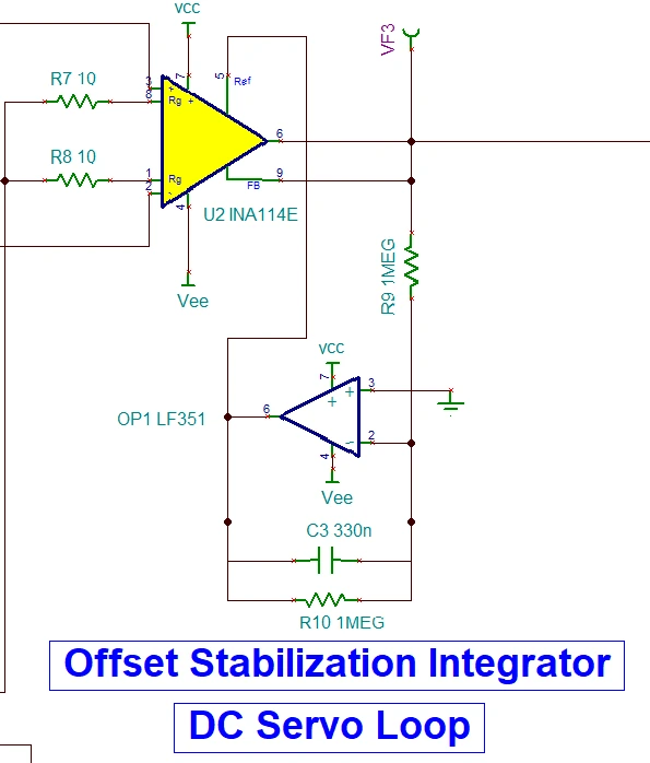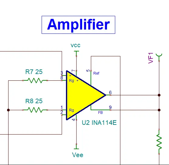 تقویت اصلی همچنان توسط INA114 قبل از VF1 انجام میشود.
