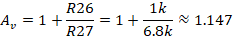 یعنی در پایینفرکانسها، مدار یک تقویتکننده غیرمعکوسکننده با گین 1.147 است.