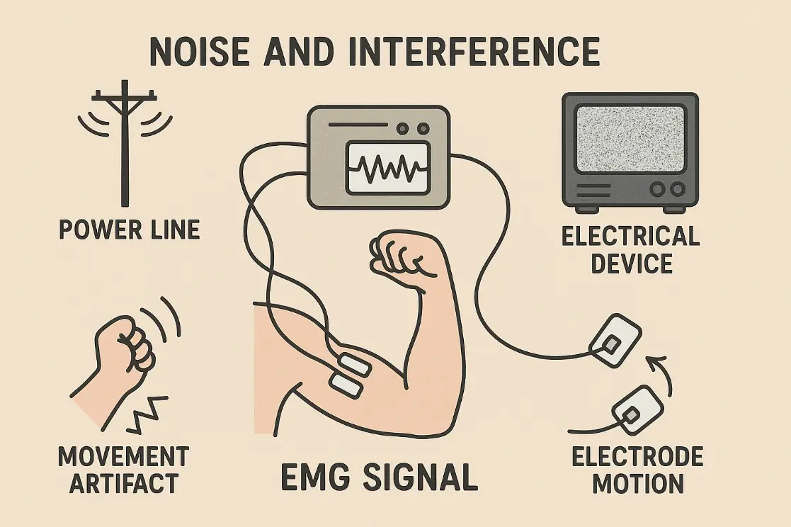 سیگنال EMG یکی از چالشبرانگیزترین سیگنالها از نظر نویز است.