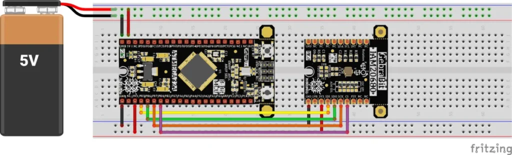 • کافی است برد ماژول GEBRABIT-IAM20680 را روی برد (Breadboard) قرار دهید و سپس با یکی از بردهای Arduino، Raspberry Pi یا Discovery و با اعمال ولتاژ مناسب، آن را راه‌اندازی کنید.