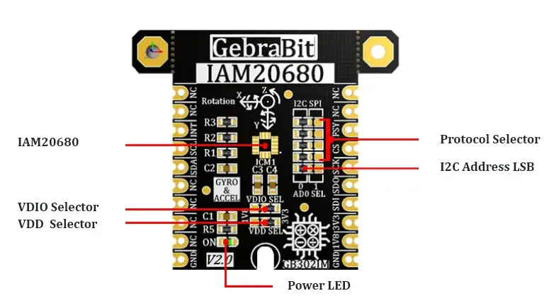 • با توجه به اینکه دسترسی به پایه‌های سنسور دشوار است، کاربران برای توسعه سخت‌افزاری و نرم‌افزاری این سنسور به یک برد ابتدایی (starter board) و درایور نیاز دارند. برای راحتی کاربران، GebraMS برد ماژول GEBRABIT-IAM20680 را طراحی کرده است. کاربران می‌توانند به کمک این برد، به مهم‌ترین پایه‌های سنسور به‌راحتی دسترسی پیدا کنند.