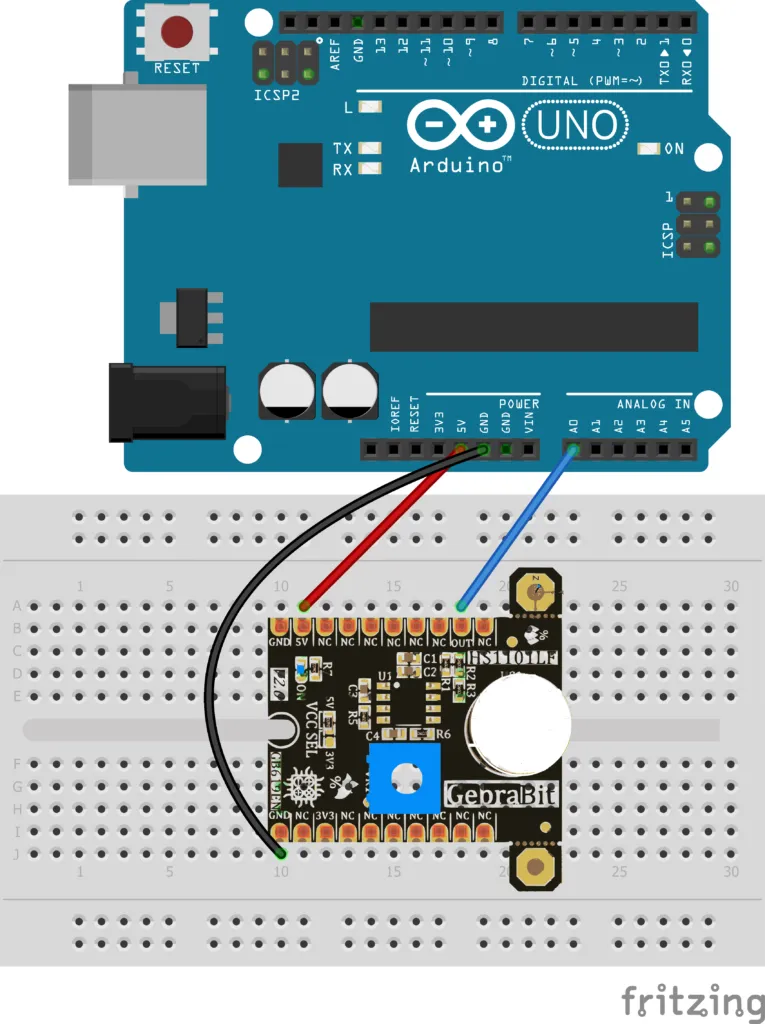 برای اتصال ماژول GebraBit HS1101LF به ARDUINO UNO مراحل زیر را دنبال کنید: