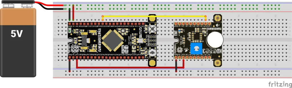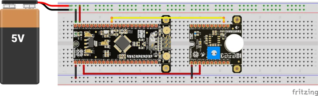 توجه: در صورت استفاده از ماژول‌های میکروکنترلریGebraBit  توجه داشته باشید که جامپر سلکتورVCC SEL ماژول GebraBit HS1101LF روی “3V3” باشد تا راحت تر بتوانید با گرفتن ولتاژ”3V3” از ماژول میکروکنترلری ، ماژول سنسور مورد نظر را راه اندازی کنید.
