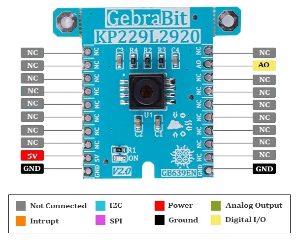 AO: دیتای خروجی سنسور، به صورت ولتاژ آنالوگ از طریق این پین در دسترس خواهد بود و خروجی این پین ،بسته به تغییرفشار، تغییر خواهد کرد.