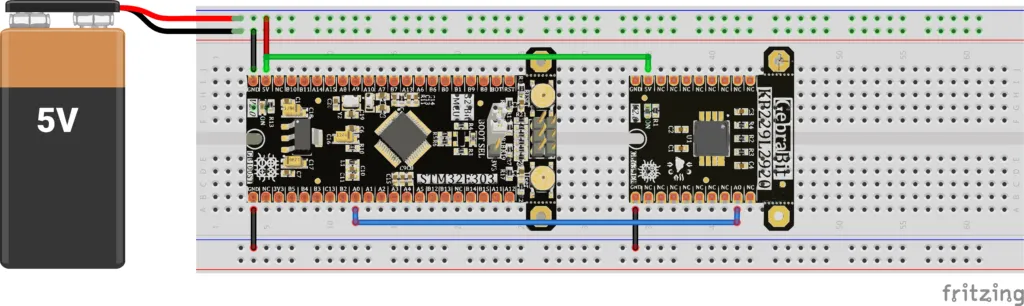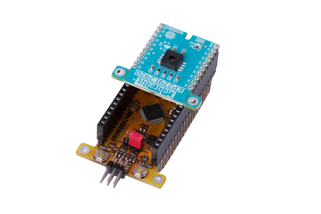 - ما بهویژه استفاده از Gebra STM32F303 را توصیه میکنیم؛ چرا که این برد دارای رگولاتور داخلی ۳.۳ ولت است و ترتیب پایههای آن با تمامی ماژولهای Gebra هماهنگ است (استاندارد GEBRABUS)، بنابراین میتوانید برد ماژول فشار GebraBit KP229L2920 را مستقیماً به سوکت مربوطه متصل کرده و بدون نیاز به سیمکشی، برنامهنویسی را آغاز کنید.