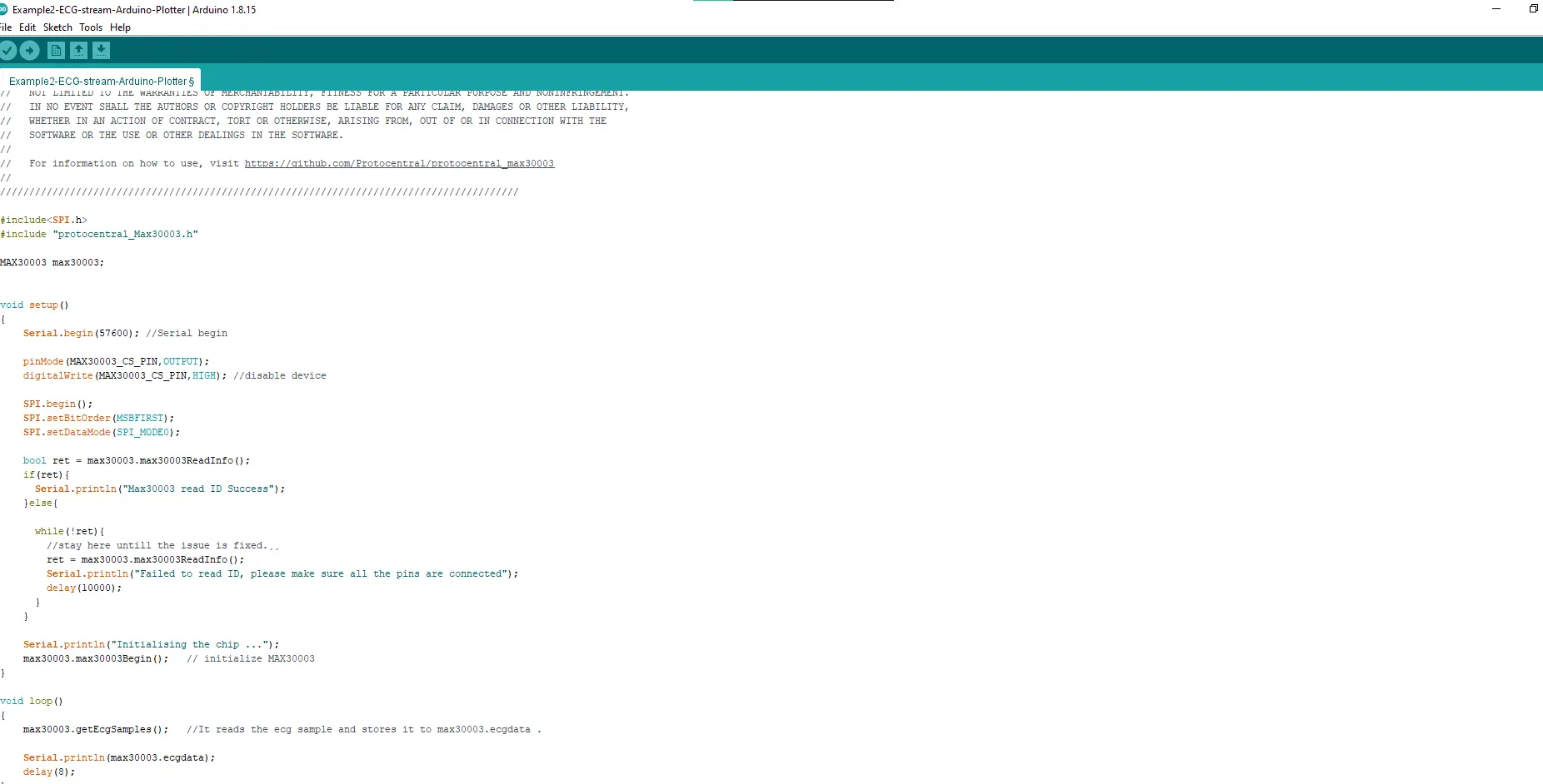 برای اجرای این پروژه به protocentral_Max30003.h و protocentral_Max30003.cpp احتیاج داریم.