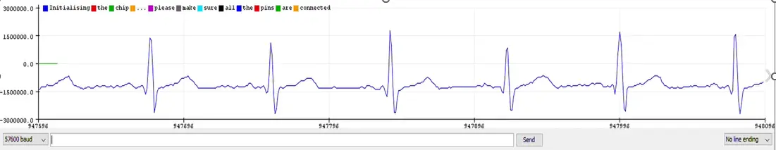 در پایان، دادهها بهصورت عددی یا نموداری در Serial Plotter آردوینو نمایش داده میشوند تا شکل موج ECG قابل مشاهده باشد.